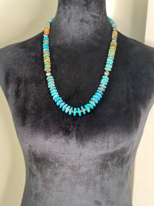 "Babs" - Green Turquoise Navajo Pearl Necklace