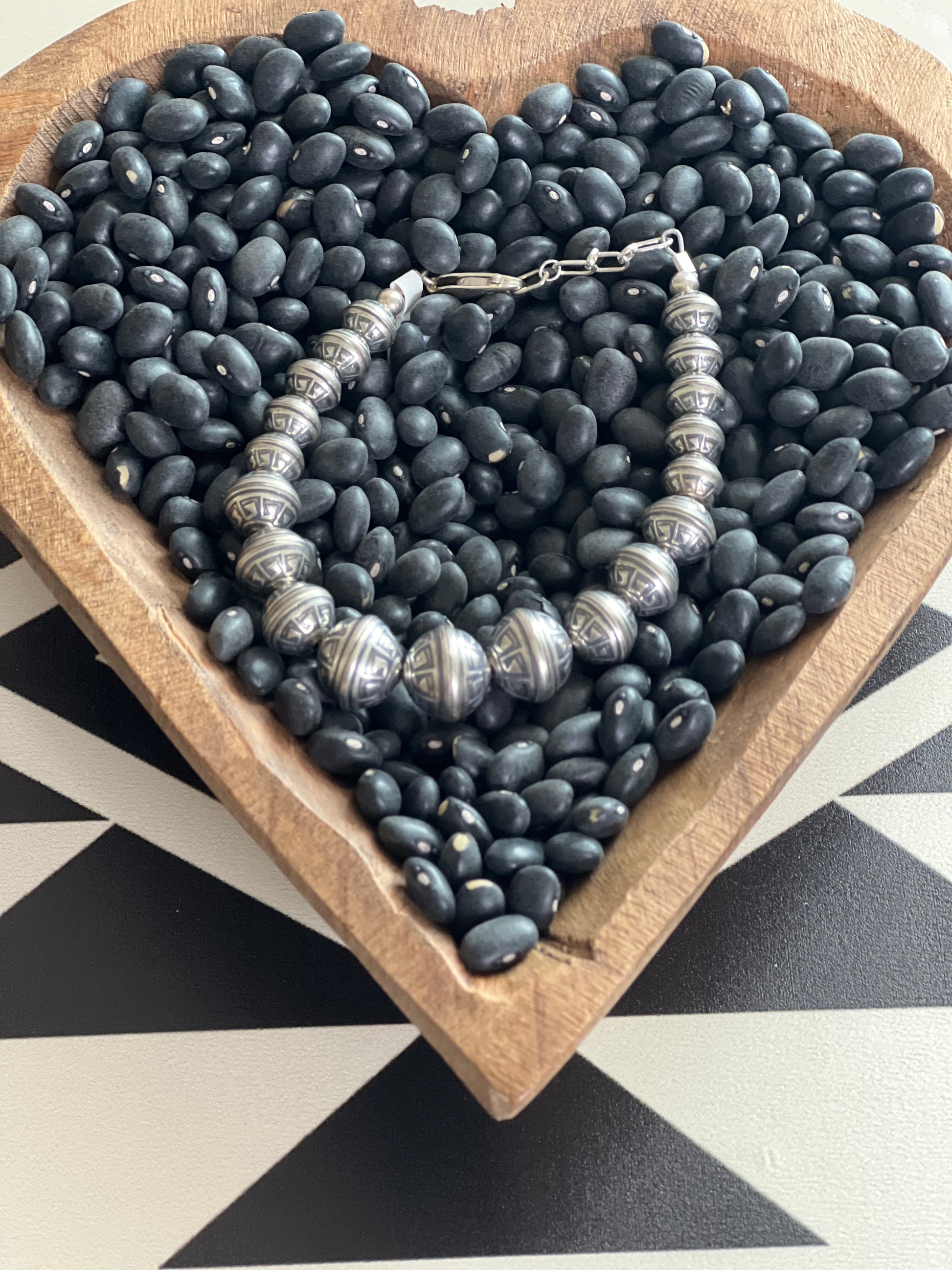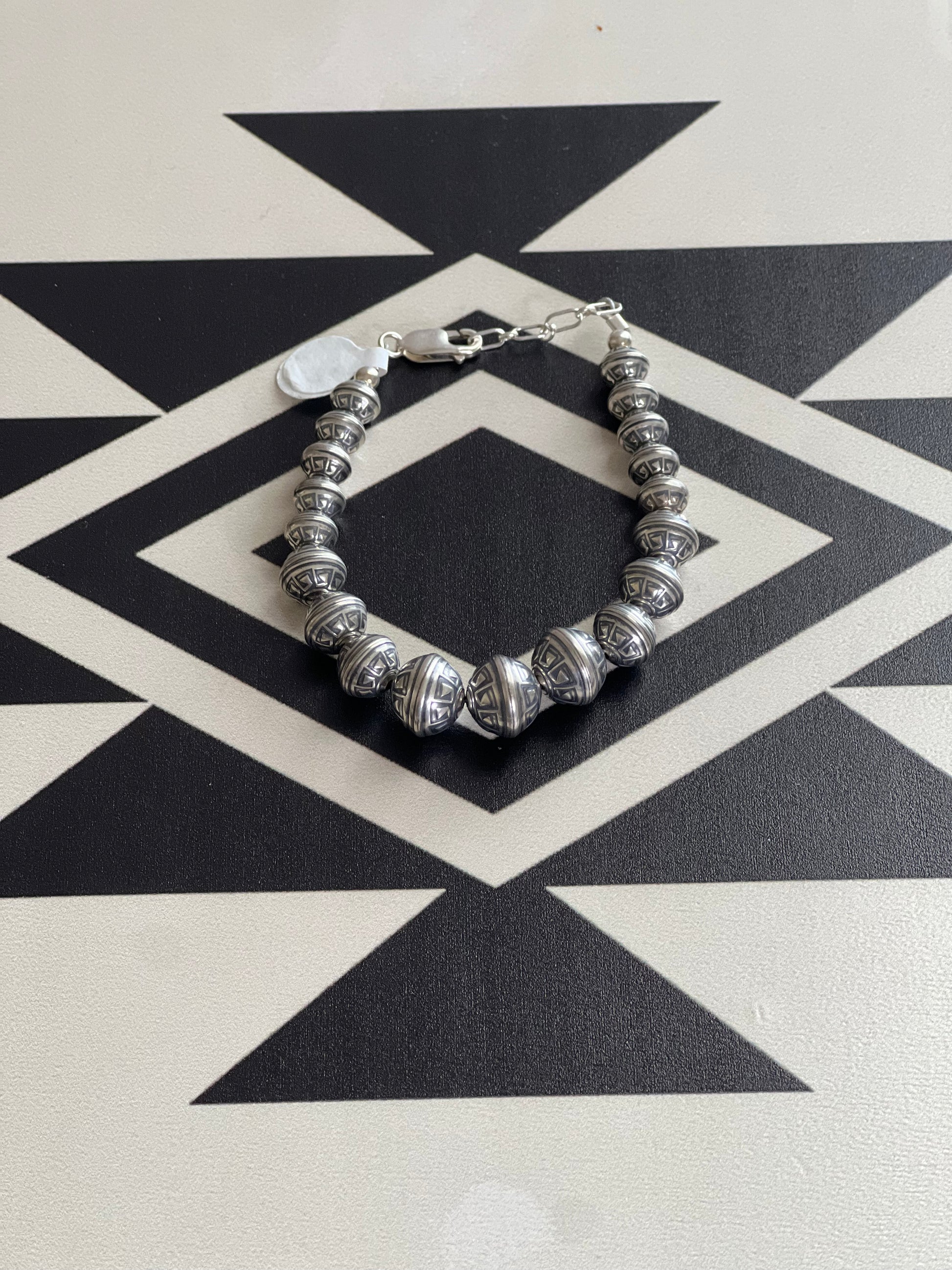 12mm Stamped Sterling Silver Navajo Pearl Bracelet. 7” with 1” Extende