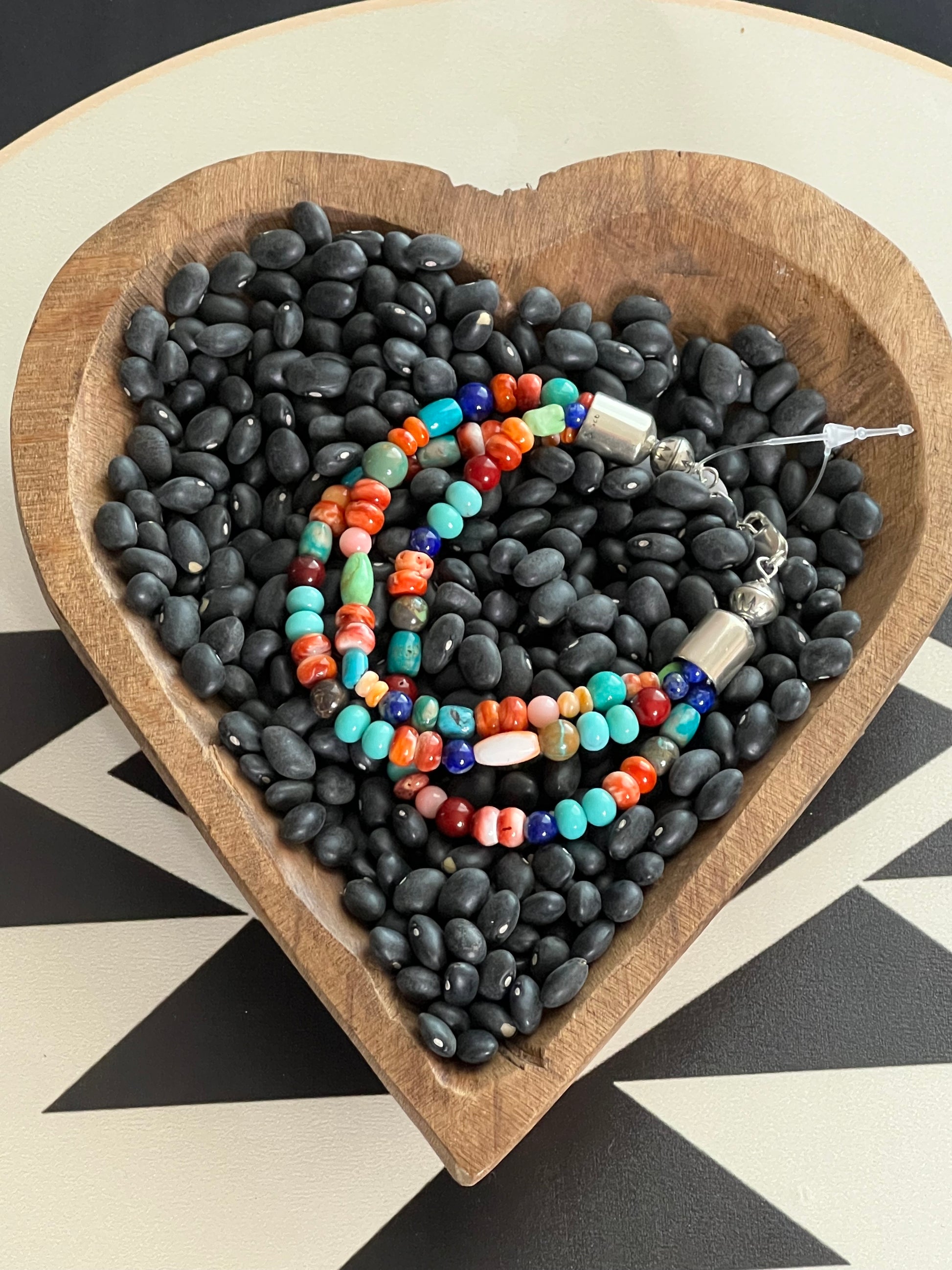 3 Strand Multi Bead Turquoise, Spiny & Lapis w/Sterling Silver Bracelet