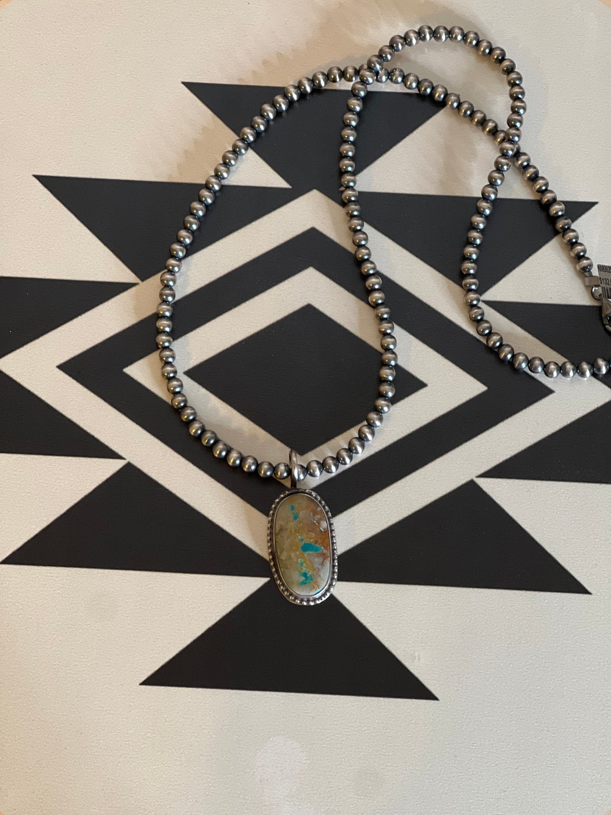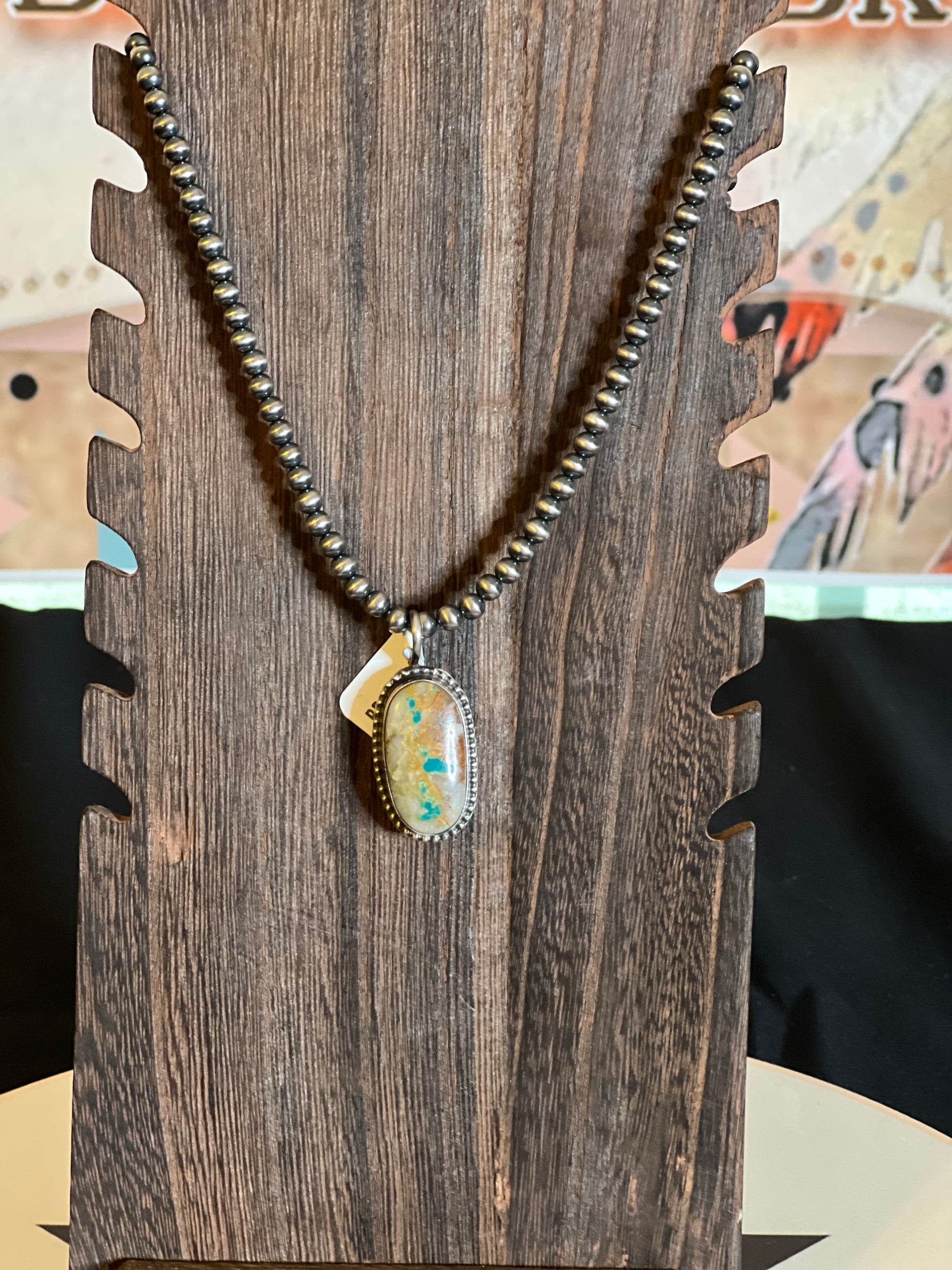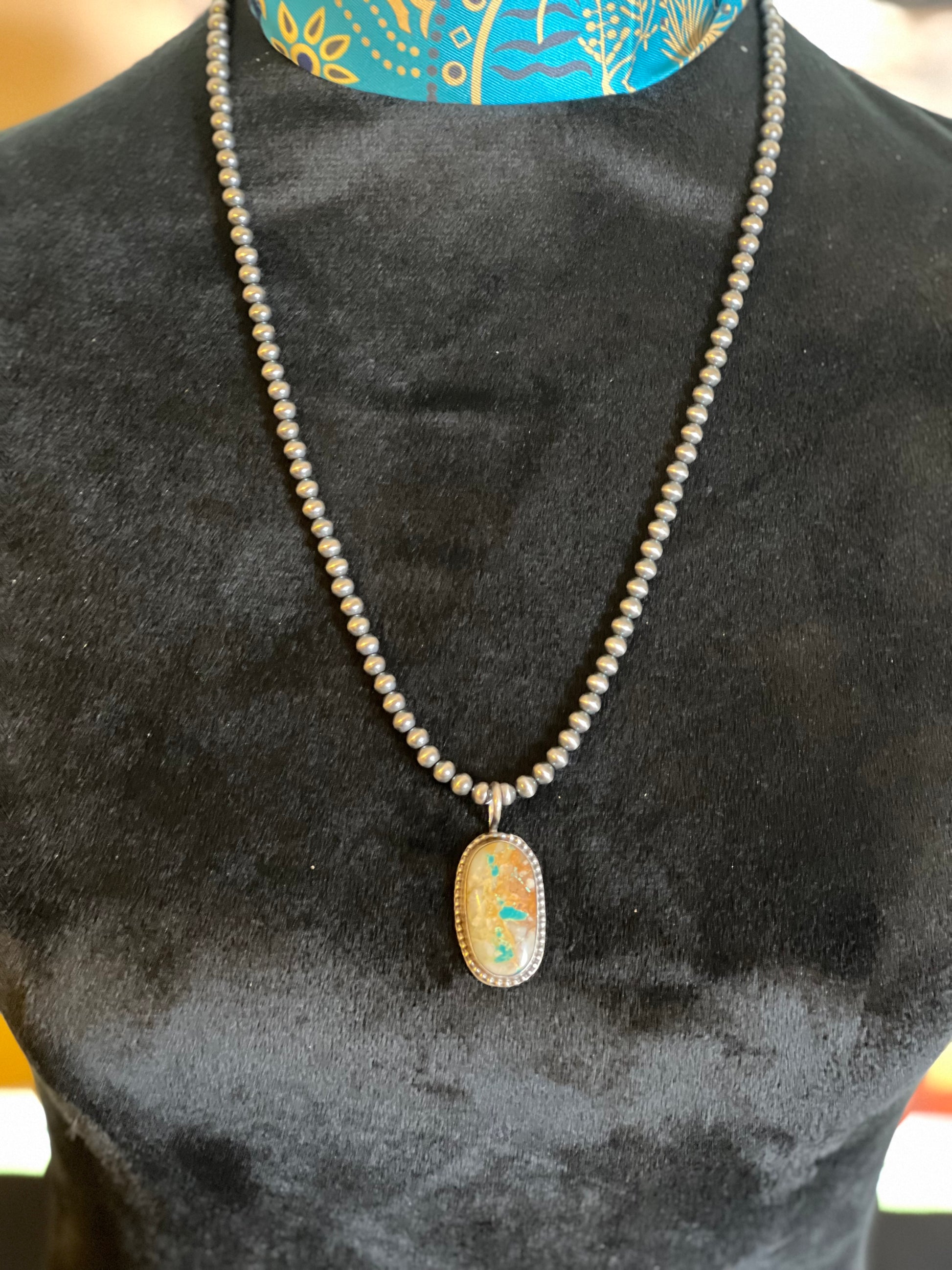 Anderson Largo Royston Ribbon / Boulder Turquoise and Sterling Silver Pendant. Turquoise runs brown & blue and fits up to a 5mm pearl.