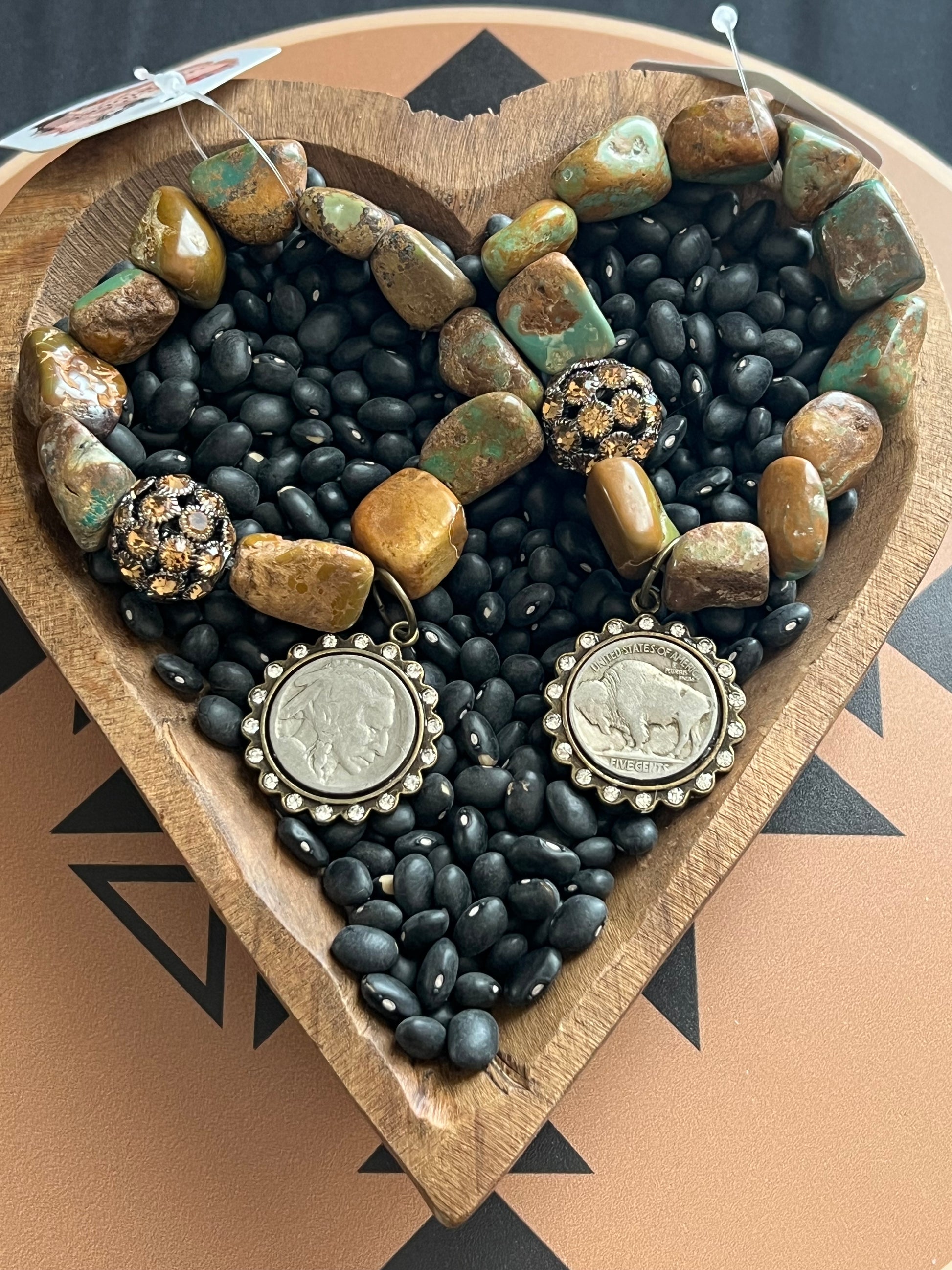 Buffalo Nickel & Chunky Turquoise Stretch Bracelet w/Bling - CHIEF or BUFFALO