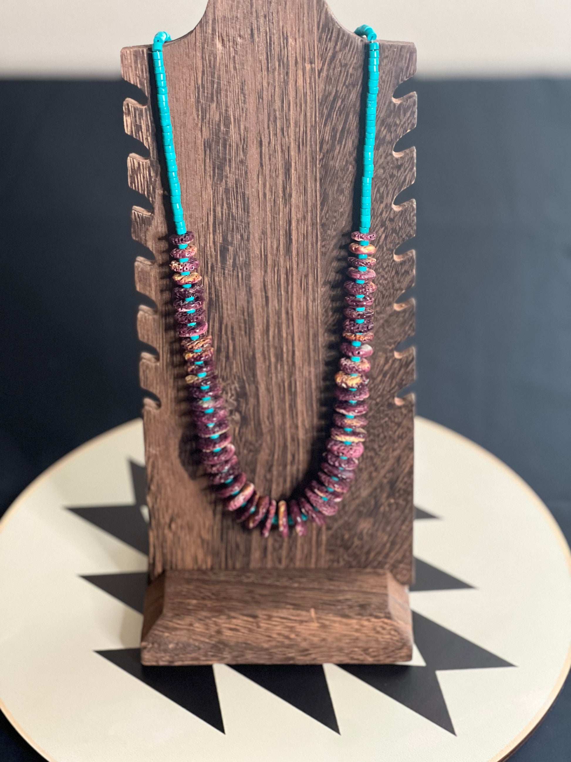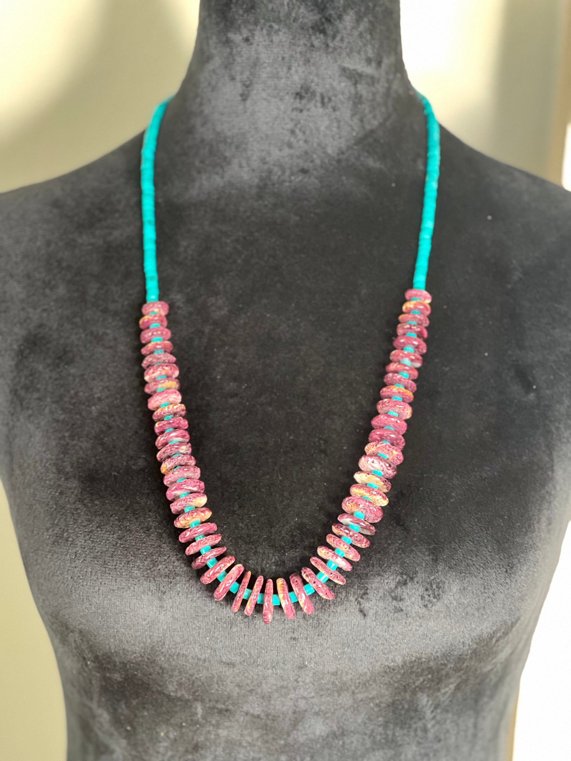 Wild & Unbridled Original. This 28" stunning purple spiny & turquoise heishi bead necklace is a show stopper!