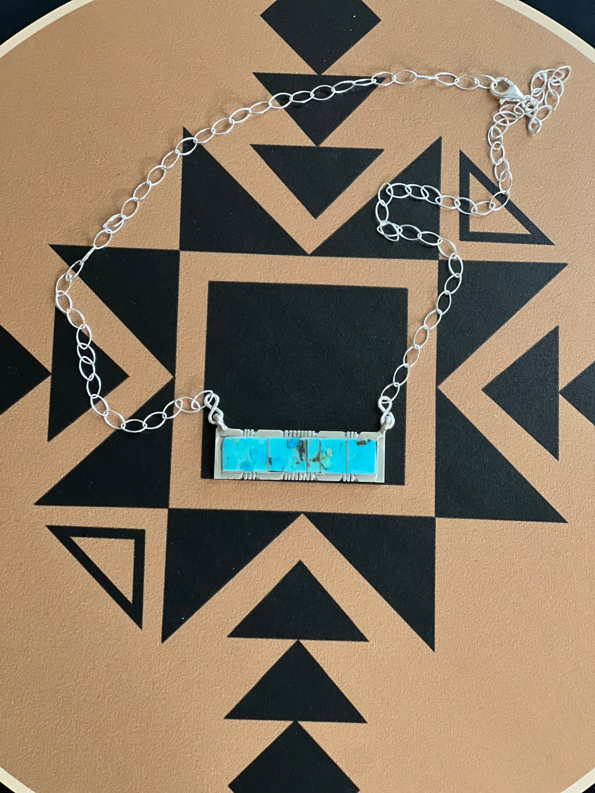 20” Sterling Silver and Inlay Kingman Bar Necklace. Navajo Artist: Steve Francisco.
