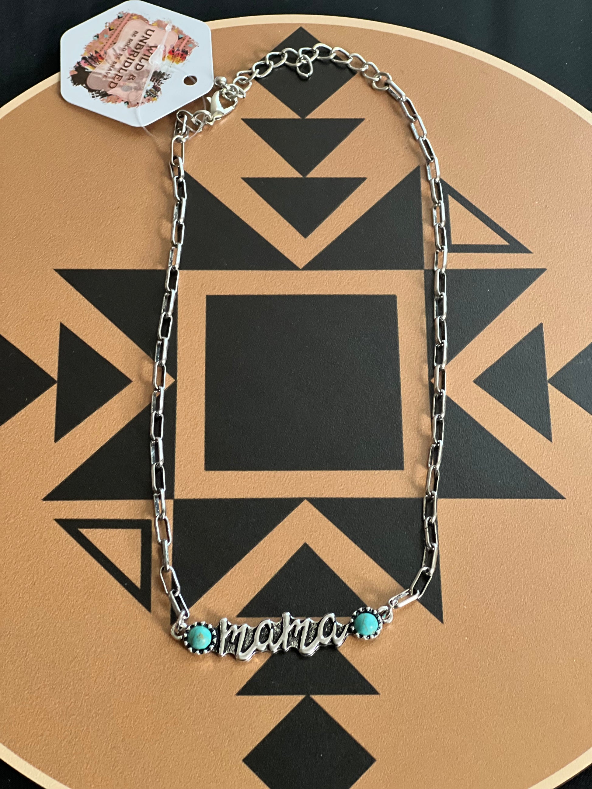 16” Inspired Silver & Turquoise Paperclip Chain Necklace w/2” Extender.