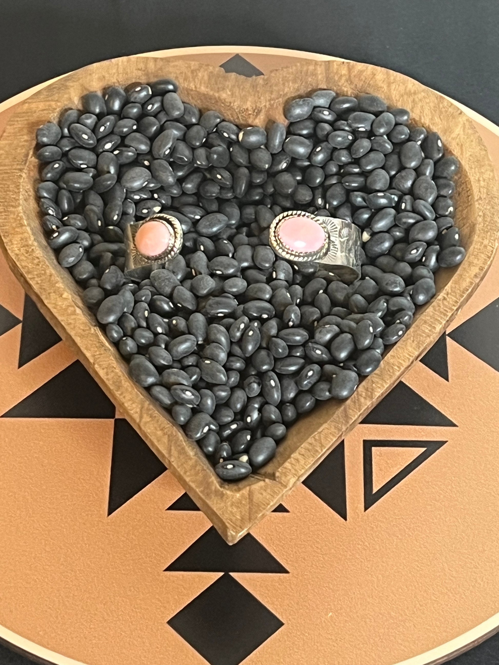 Stamped Sterling Silver Pink Opal Cuff. 1” Open Top, 6” and will fit 8” with flex.