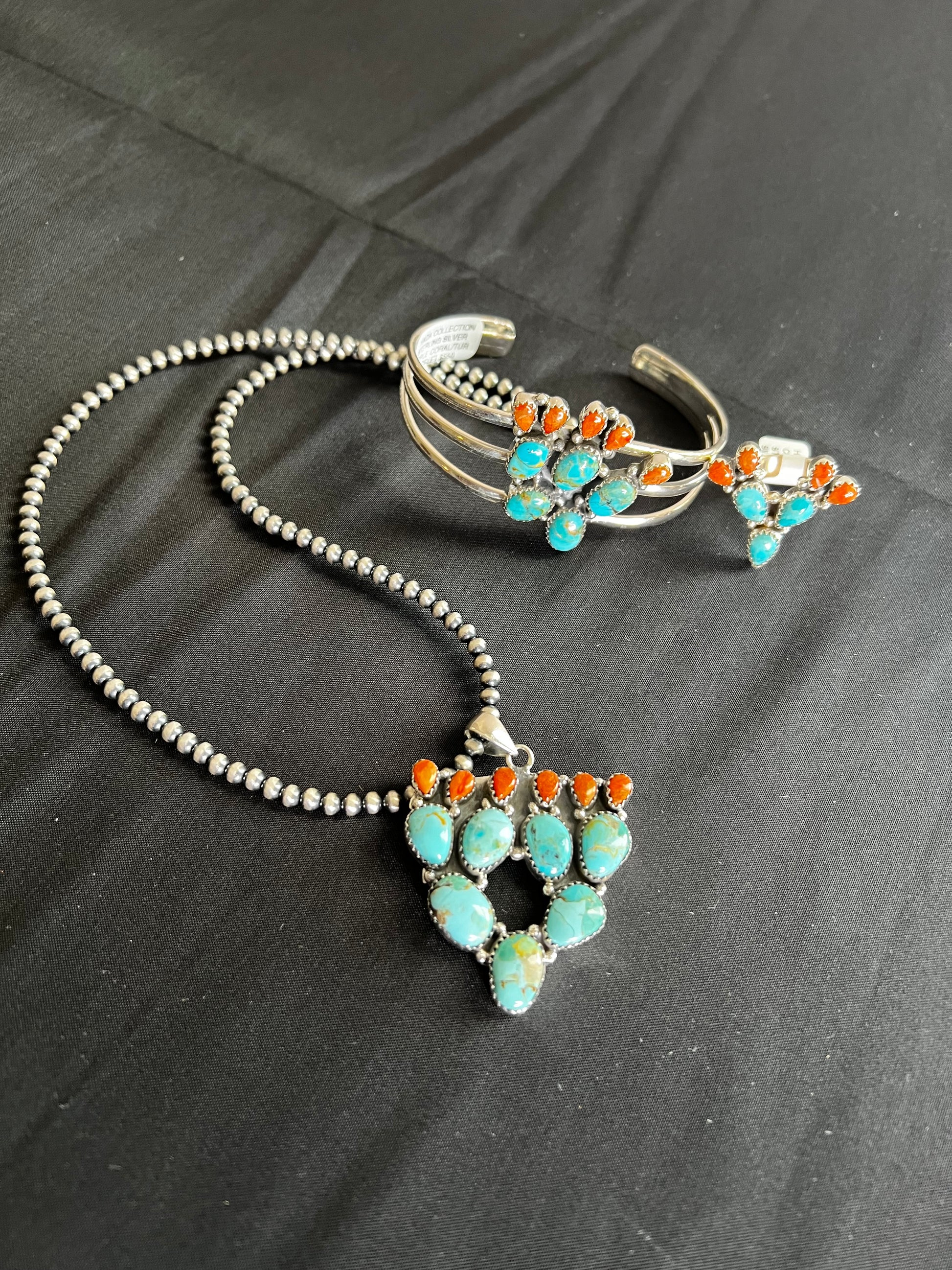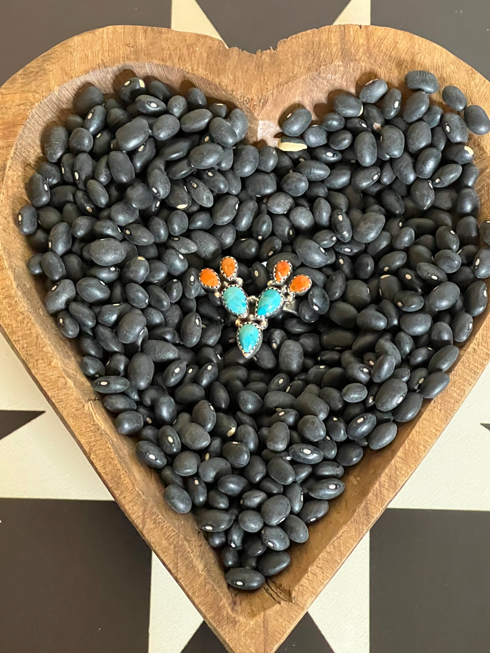 Adjustable Kingman Turquoise and Apple Coral Ring.