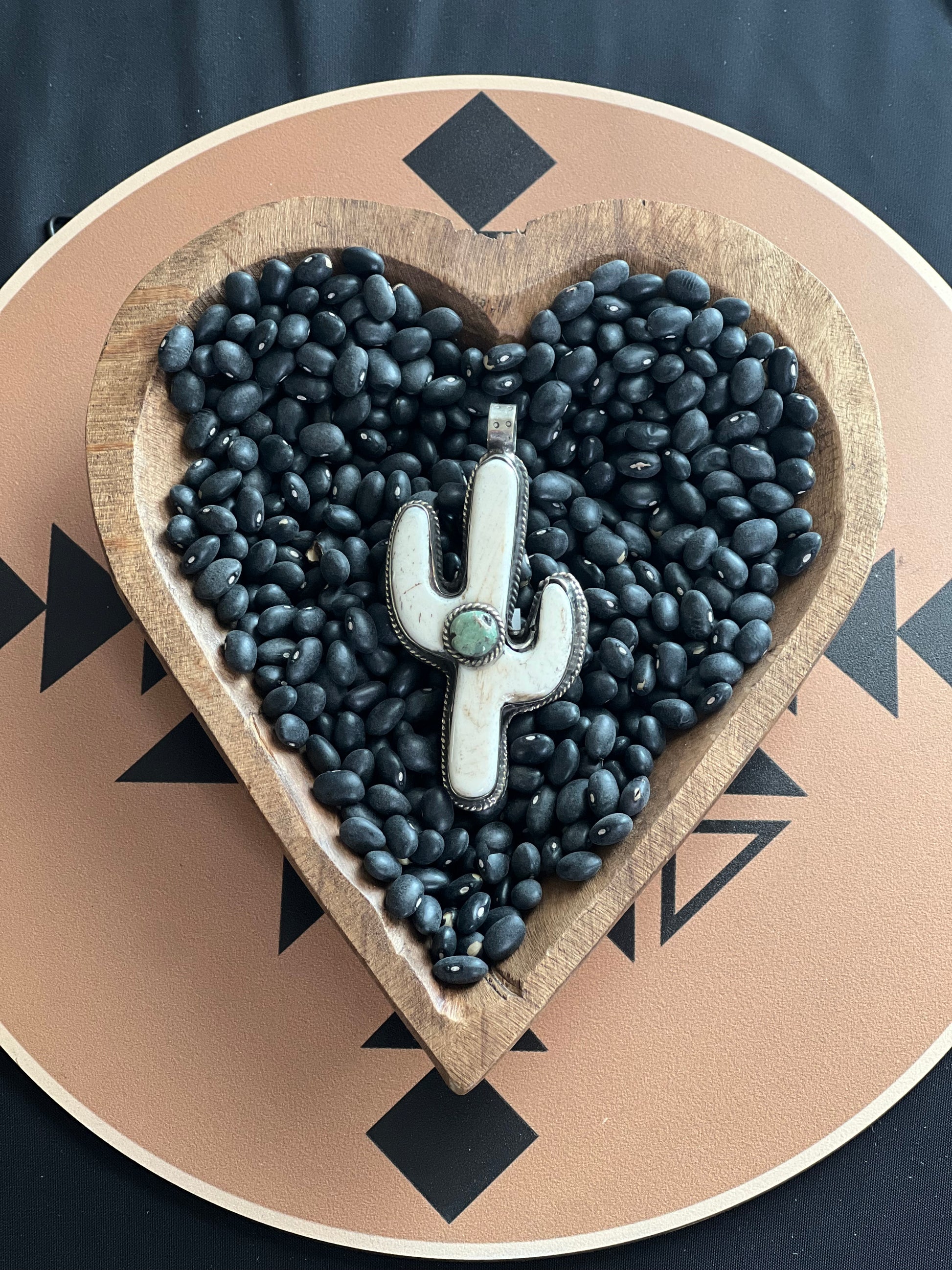Tibetan Bone, Turquoise and Silver Cactus Pendant. Bail fits 7mm bead.