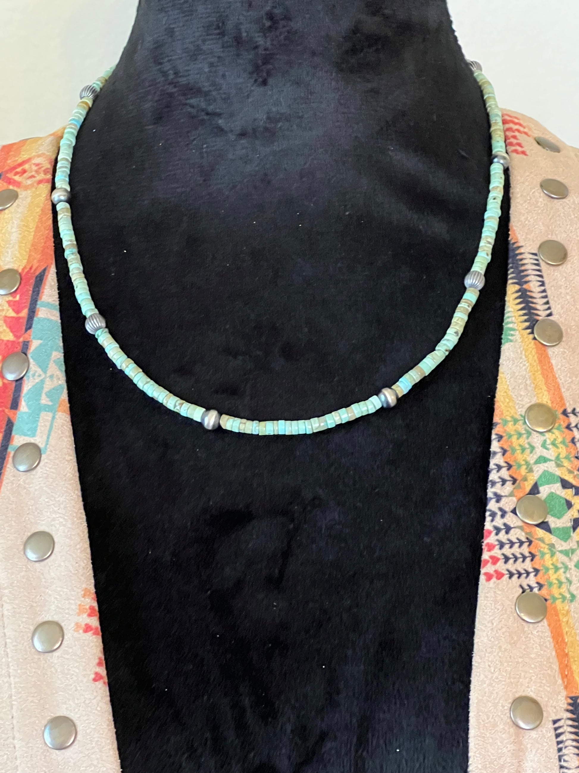 Wild & Unbridled Original. 18” w/1” Extender. Turquoise Heishi & Navajo Pearl Necklace. (Green)