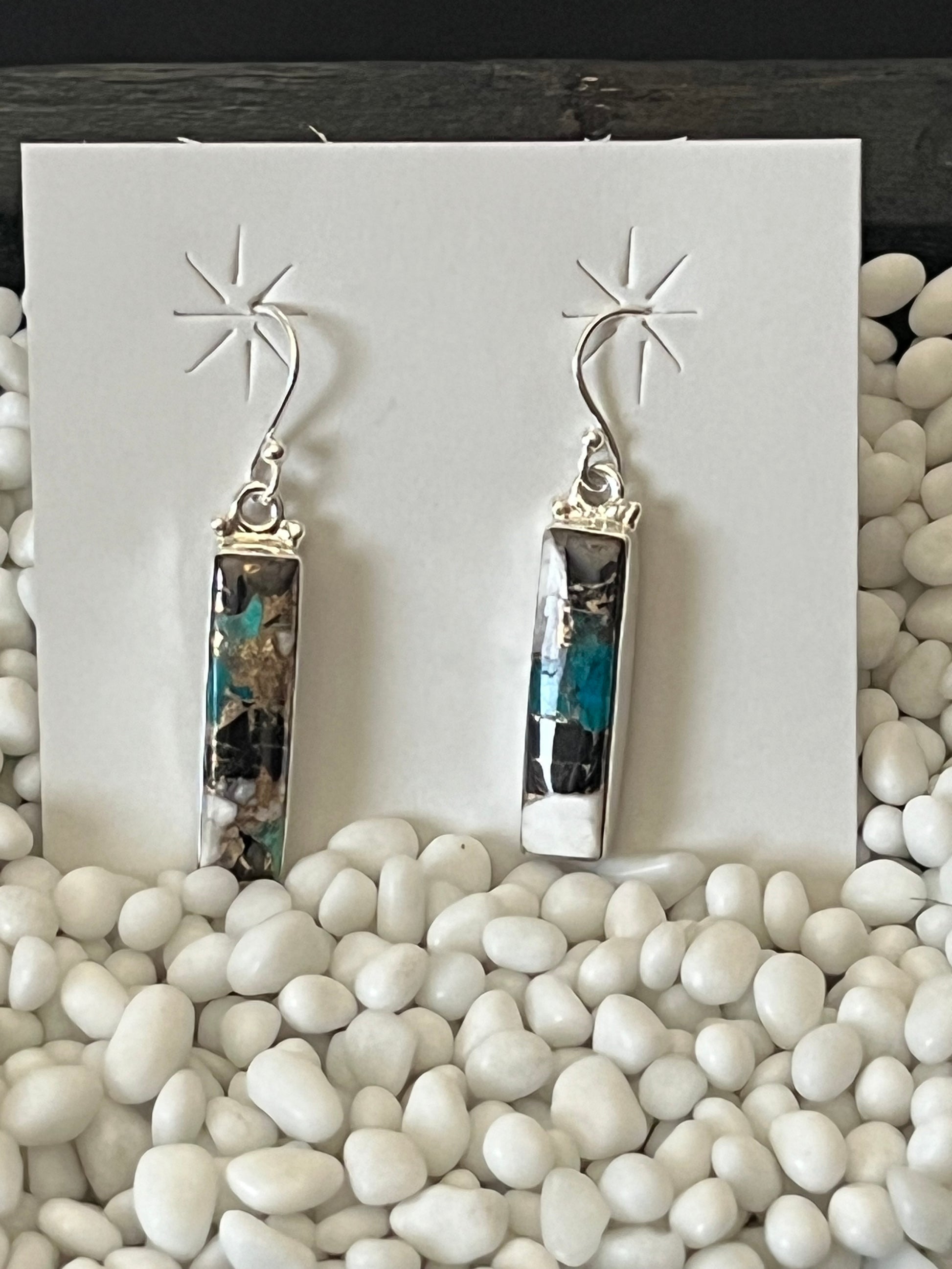 White Buffalo, Kingman and Sterling Silver Fishhook Earrings